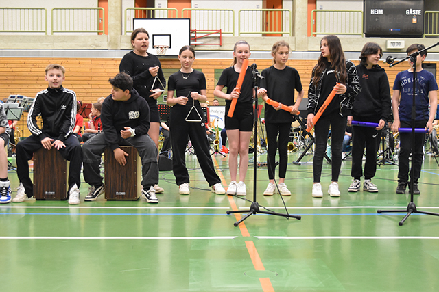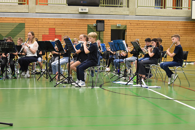 Unter den Gästen waren Schulamtsdirektorin Andrea Eisenreich, die Bürgermeister Thomas Reicherzer und Thomas Baumann, Vertreter der örtlichen Musikvereine sowie fast 400 stolze Eltern und Verwandte, die gekonnt von Schülerinnen und Schülern der 4. Klassen durch den Abend geführt wurden.